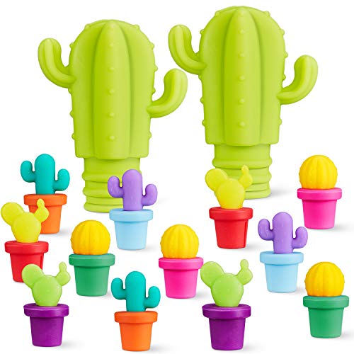 Customer reviews 2 Sets Cactus Stopper Cactus Charms Wine Charms Set, Include 2 Pieces Green Cactus Silicone Bottle Stopper Wine Stoppers and 12 Pieces Multi Color Glass Marker Stoppers